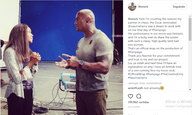 Rampage, antigo jogo arcade de 1986, encerrou as suas filmagens nesta segunda-feira dia 11 de Julho. O anuncio foi feito na conta oficial do Instagram, pelo próprio ator Dwayne Johnson, que estava envolvido com a produção do filme, que tem o elenco formado pelos atores Jeffrey Dead Morgan, Naomi Harris, Malin Akerman e Joe Manganiello.