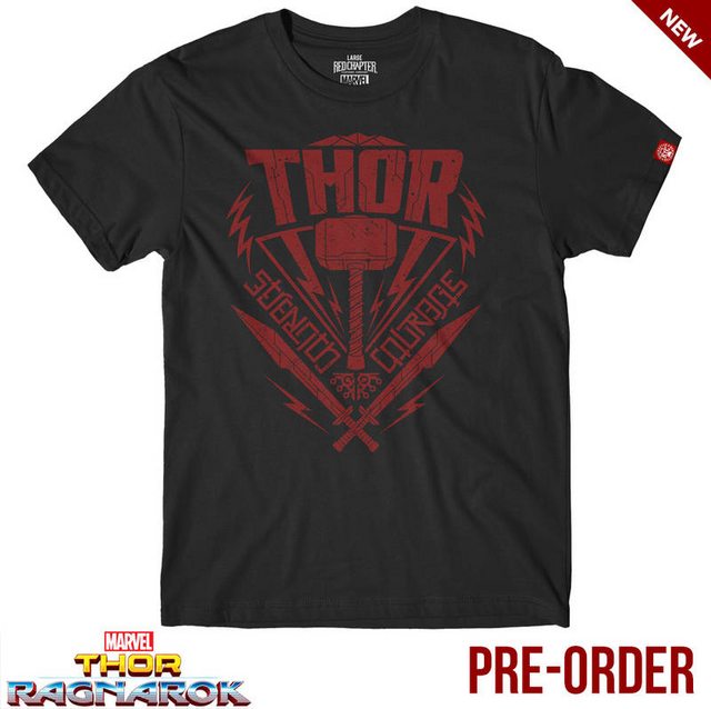 Hoje, foram divulgadas novas camisetas com estampas inspiradas no filme Thor: Ragnarok, filme que fecha a trilogia do Deus do Trovão nos cinemas.